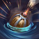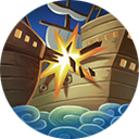 向最近的敌人位置投掷燃油桶,降低燃油范围内的敌人船速,在短暂延迟后点燃燃油,对仍在范围内的敌人总共造成炮火伤害