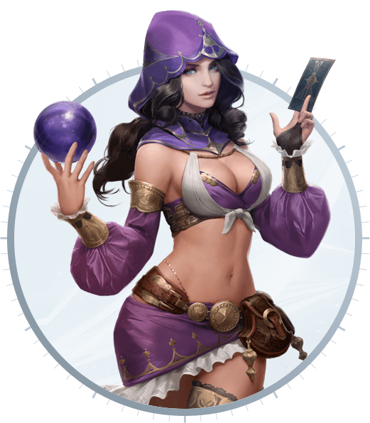偏向于控制和咒术输出、精通古典咒术的“占卜师”,自从在水晶球中看到了自己的未来,便义无反顾地踏上远行战舰的甲板,她的身世无人知晓,神秘莫测,拥有大自然的力量。