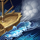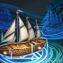 水神达佛涅的庇佑,对周围范围敌人造成炮火伤害,外围敌人只受到50%的伤害,并降低敌人船速,持续数秒。伤害后自身回复