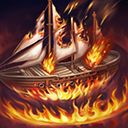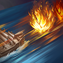 加大帆力,提升船速,加速持续数秒,并在船后泼洒希腊之火,进入火焰范围的敌人每秒受到炮火伤害,火焰持续数秒。