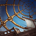 向周围的单个随机敌人发射缠网弹,造成炮火伤害,并且降低船速,持续数秒。